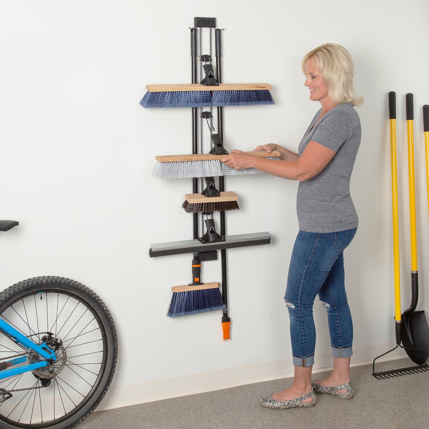 - Saves space in the cleaning closet or garage via an organized system that stores multiple heads that can be used with multiple handles